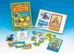 Opis produktu:Podobnie jak w pierwszej części Zagadek Smoka Obiboka na jednej stronie karty znajduje się rymowana zagadka, a na odwrocie kolorowa ilustracja. Na stole leżą odkryte części puzzli z wizerunkami Smoka Obiboka. Powinno być rozłożonych tyle obrazków, ile dzieci uczestniczy w danej grze. Za prawidłową odpowiedź dziecko otrzymuje jeden element puzzla, który właśnie układa. Kto pierwszy ułoży swój obrazek ten wygrywa. Gra uczy logicznego myślenia, przygotowuje do rozwiązywa nia problemów, wzbogaca słownictwo, uczy formułować odpowiedzi na zadane pytania.Zawartość pudełka:135 wesołych rymowanych zagadek (bardzo przydatna do pracy w przedszkolu i podczas różnych imprez dla dzieci), 6 puzzli z portretami Smoka Obiboka, instrukcja.Gra przeznaczona:dla 1 do 4 graczy, w wieku od 4 do7 lat.