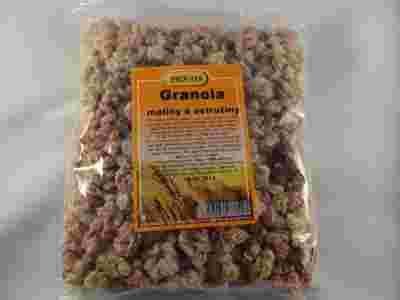 Granola to doskonały,zdrowy początek dnia.Podana z mlekiem lub jogurtem będzie znakomitą alternatywą dla pełnych cukru i utwardzonych tłuszczy popularnych płatków śniadaniowych.