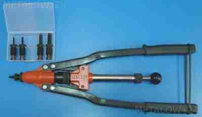 Posiada mechanizm zrywająco-gwintujący, umożliwiający wykonanie połączenia nitowego z jednoczesnym nacięciem gwintu wewnętrznego M4 - M10, do którego można mocować inne elementy konstrukcyjne.