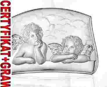 GRAWER+PUDEŁKO SREBRNY OBRAZEK ANIOŁKI Chrzest