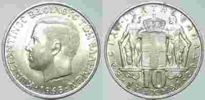 GRECJA - 10 DRACHMA 1968 r moneta nr 2
