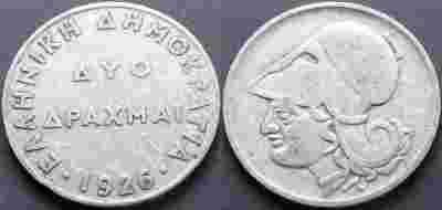 GRECJA 2 DRAHMY 1926 LEONIDAS