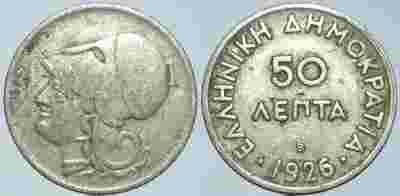 GRECJA - 50 LEPTA 1926 r odmiana B - moneta nr 19