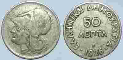 GRECJA - 50 LEPTA 1926 r odmiana B - moneta nr 4