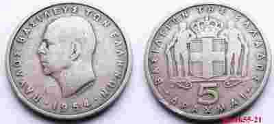 GRECJA 5 DRACHM 1954