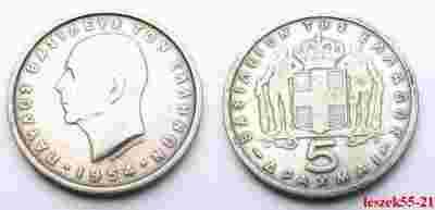 GRECJA 5 DRACHM 1954