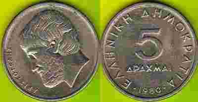 GRECJA 5 Drachmai 1980 r.