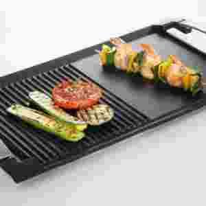 Wydłużony grill Plancha przeznaczony jest do płyt indukcyjnych firmy Electrolux wyposażonych w funkcję Bridge. Funkcja ta