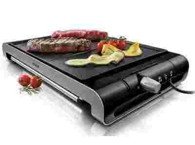Bardzo gorąca płyta elektrycznego grilla firmy Philips umożliwia przyrządzanie soczystych i aromatycznych dań. Gdy opiekane pożywienie dotyka powierzchni grilla, zaczyna skwierczeć i rumienić się, tworząc wyborną, chrupiącą skórkę, zachowującą cały smak i aromat w środku.