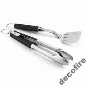 Wspaniałe uzupełnienie akcesoriów do grillowania. Dwuczęściowy zestaw został wykonany ze stali nierdzewnej. W jego skład wchodzą: łopatka oraz szczypce. Akcesoria są zakończone uchwytem do łatwego zawieszenia. Rączki sztućców posiadają specjalne silikonowe aplikacje, które gwarantują łatwość oraz stabilność uchwytu. Zestaw sztućców Weber® to idealny pomysł na ciekawy prezent!