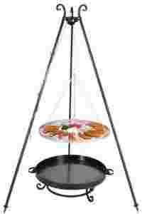 kompletny zestaw do przyrządzania posiłków nad ogniskiem. W zestawie ruszt, trójnóg wraz z kompletem ocynkowanych łańcuchów i karabińczykami do zawieszenia rusztu oraz stylowe palenisko ogrodowe.