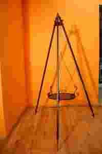 RUSZT PODWIESZONY NA REGULOWANYM ŁAŃCUCHU POMALOWANY OGNIOTRWAŁĄ FARBĄ, oczka na końcu łańcucha pozwalają na szybki demontaż rusztu w celu jego oczyszczenia lub przechowywania, średnica 400 mm