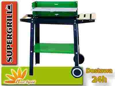 GRILL PROSTOKĄTNY NA KÓŁKACH PÓŁKI DREW 53 x 27 cm