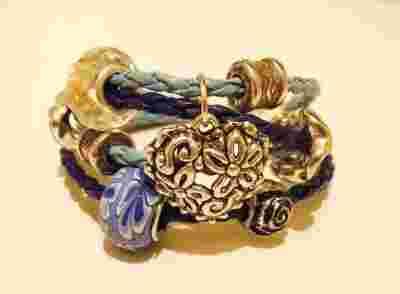 GRUBA BRANSOLETKA modułowa rzemyk serce z charms