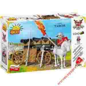Zestaw klocków z serii Grunwald składający się z 100 elementów i 1 figurki.