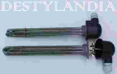 Materiał: kathalowe druty oporowe zamknięte w otulinie z MgO w rurkach fi8mm ze stali kwasoodpornej nierdzewnej AISI316 do stosowania w zbiornikach ze stali nierdzewnej.