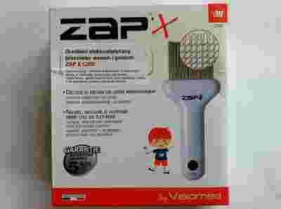 Przedmiotem aukcji jest nowy nieużywany GRZEBIEŃ ELEKTROSTATYCZNY PRZECIWKO WSZOM I GNIDOM ZAP X C200 Grzebień elektrostatyczny przeciwko larwom i gnidom ZAP X C200 łatwy w obsłudze bezpieczny nawet dla dzieci powyżej 3 lat zabija larwy i gnidy natychmiast oraz paraliżuje wszy skuteczność dzięki specjalnym zębom grzebienia, które się elektryzują przez tarcie 100% skuteczności Owadobójczy - zamiast preparatów chemicznych Grzebień elektroniczny przeciwko wszom C200 ZAPx to doskonały produkt do walki z pasożytami. Walka z wszami u dzieci i u dorosłych nie jest łatwa. Tradycyjne metody leczenia są zazwyczaj skuteczne, ale dość problematyczne i nieprzyjemne zarówno dla dzieci jak i dla rodziców. Firma Visiomed ma zaszczyt zaprezentować nową skuteczną metodę walki z wszami. Grzebień C200 ZAPx to specjalne urządzenie. Jest to doskonała alternatywa dla kremów, szamponów i innych preparatów owadobójczych. Grzebień elektrostatyczny przeciwko gnidom C200 ZAPx to doskonały produkt do walki z jajami i larwami pasożytów. Dzięki specjalnie zaprojektowanym zębom grzebienia łatwo i szybko pozbędziesz się niechcianych gości. Między zębami grzebienia, poprzez tarcie elektrostatyczne o włosy, wytwarza się napięcie elektryczne, które paraliżuje owady, ale jest nieodczuwalne przez człowieka. Grzebień elektronicznyC200 ZAPx to specjalnie zaprojektowane urządzenie do walki z pasożytami zarówno u dzieci jak i u dorosłych. Jest to metoda całkiem bezbolesna i bardzo skuteczna. Grzebień niszczy przede wszystkim pasożytnicze larwy i gnidy, dzięki specjalnym żłobieniom, które rozrywają larwy i jaja owadów. Grzebień jest przeznaczony do wielokrotnego użytku, można go używać tak często jak jest to konieczne. Po każdym użyciu należy zdezynfekować grzebień. Nie wolno używać grzebienia C200 ZAPx na mokre włosy.