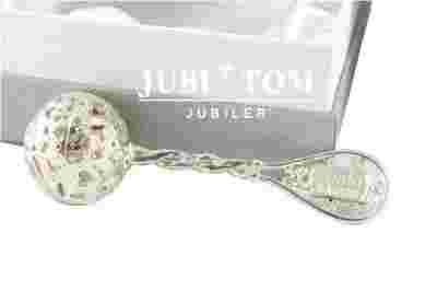 Grzechotka wykonany ze srebra próby 0,925 (ocechowane przez Państwowy Urząd Probierczy).
