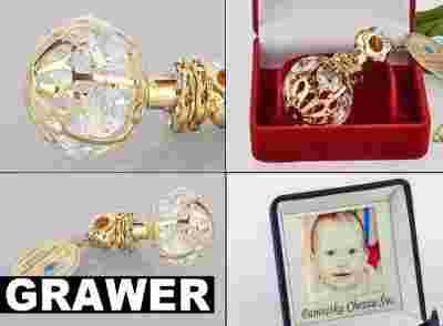 Grzechotka Swarovski Pudełko CHRZEST Roczek grawer