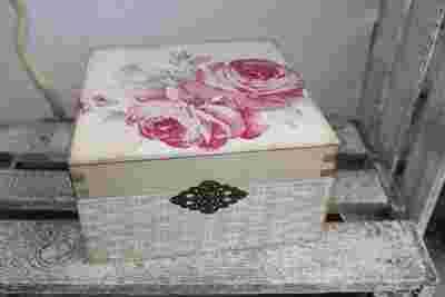 Dekorowane techniką decoupage. Ręcznie malowane farbą akrylową w kolorze ecru. Postarzanie shabby chic nadające przedmiotowi wyjątkowy wygląd.