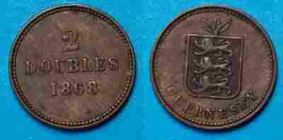 Guernsey 2 Double 1868 rok od 1zł i BCM