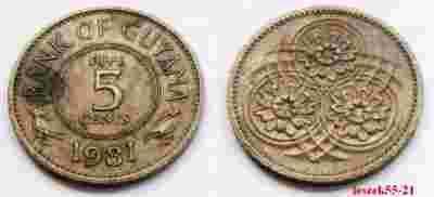 GUJANA 5 CENTS 1981 PTAKI