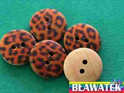 Przedmiotem aukcji są guziki drewniane w kolorze ciemnej pomarańczy (panterki).