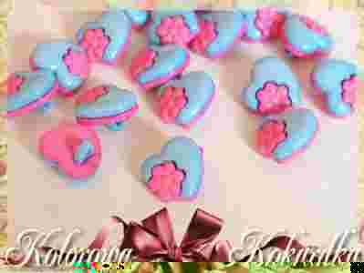 Guzik guziki serduszko niebieski różowy 3 szt