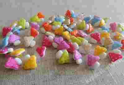 Na tej aukcji kupisz plastykowe guziki w kształcie grzybków. Guziki mają średnicę 16mm. Posiadają oczko do przeszycia umieszczone od spodu guzika.