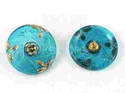 Szklane, czeskie, ręcznie malowane guziki o średnicy ok. 27 mm z mosiężną stopką. Ze względu na ręczne wykonanie poszczególne egzemplarze mogą nieznacznie się różnić między sobą.