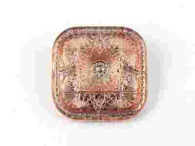 Szklane, czeskie, ręcznie malowane guziki o boku ok. 33 mm z mosiężną stopką. Ze względu na ręczne wykonanie poszczególne egzemplarze mogą nieznacznie się różnić między sobą.