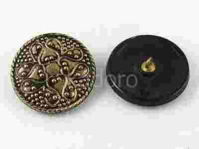Szklane, czeskie, ręcznie malowane guziki o średnicy ok. 31.5 mm z mosiężną stopką. Ze względu na ręczne wykonanie poszczególne egzemplarze mogą nieznacznie się różnić między sobą.