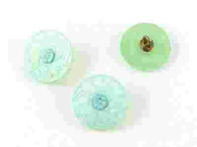Szklane, czeskie, ręcznie malowane guziki o średnicy ok. 18 mm z mosiężną stopką. Ze względu na ręczne wykonanie poszczególne egzemplarze mogą nieznacznie się różnić między sobą.