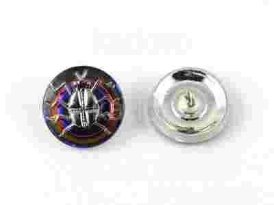 Szklane, czeskie, ręcznie malowane guziki o średnicy ok. 18 mm z mosiężną stopką. Ze względu na ręczne wykonanie poszczególne egzemplarze mogą nieznacznie się różnić między sobą.