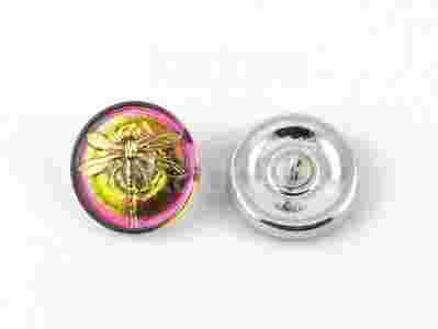 Szklane, czeskie, ręcznie malowane guziki o średnicy ok. 18 mm z mosiężną stopką. Ze względu na ręczne wykonanie poszczególne egzemplarze mogą nieznacznie się różnić między sobą.