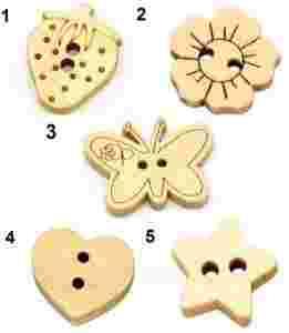 Prześliczne drewniane guziczki w 5 kształtach. Niebanalna ozdoba każdego ciuszka lub dodatku. Idealne do scrapbookingu.