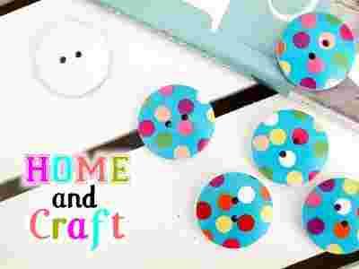 GUZIKI DREWNIANE KOLOROWE - BLUE W KROPKI 23 mm