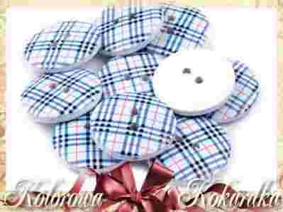 Guziki drewniane kratka niebieska 20 mm 2 szt
