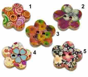 Guziki Drewniane Malowane Kwiatki.