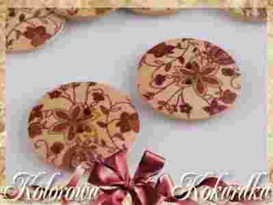 Guziki drewniane w kwiatki bordowe 30mm