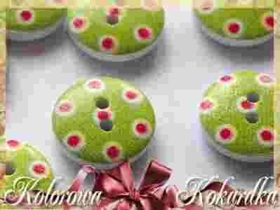 Guziki drewniane zielony czerwone kropki groszki