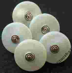 Przedstawiam guzik fantazyjny w kolorze: perłowy,chłodny odcień,srebrny środek, na stopce.