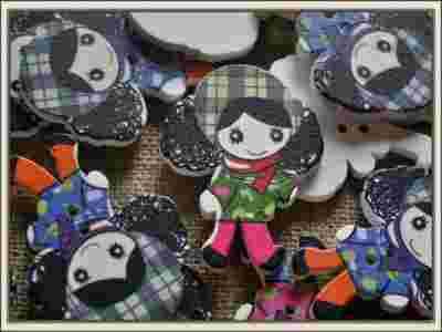 Guziki guzik DZIEWCZYNKA mix drewno 35 mm L4