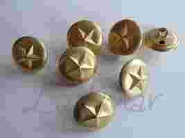 Nietuzinkowe guziki metalowe na stopce, okrągłe, w stylu militarnym.