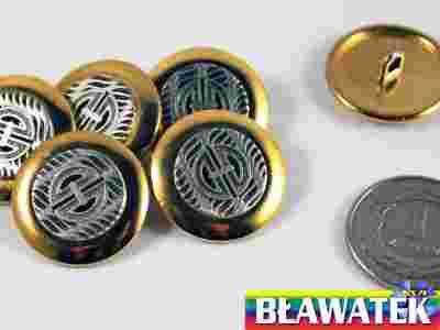 Guziki metalowe, złota obwódka, na stopce, 23 mm