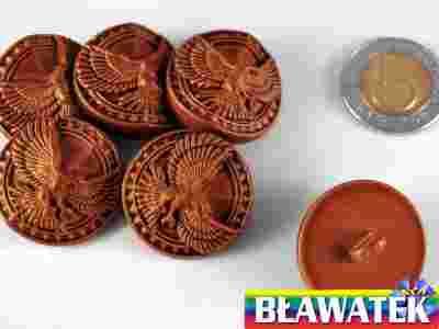 Guziki plastik, kolor drewna orzeł na stopce 24 mm