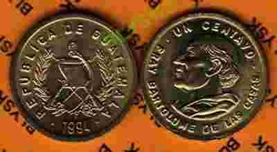 GWATEMALA /KM-275.5/ 1 CENTAVO 1994 r.Stan I/-I
