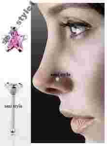 GWIAZDA KOLCZYK DO NOSA 925 SREBRO 0,7/7/3mm RÓŻ