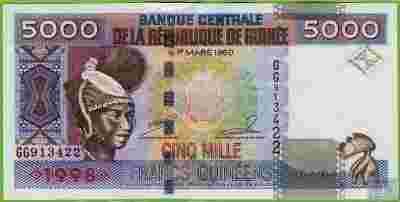 GWINEA 5000 Francs 1998 P38 UNC Zapora GG