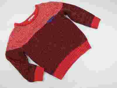 czerwony melanż, dziergany, kieszonka, śliczny